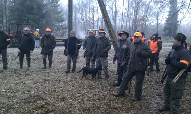 W mglisty i zimny sobotni poranek na zbiórce stawiło się 30 kolegów, co stanowiło dawno nie rejestrowany wynik. Odprawa prowadzącego Wieśka Sowy była szybka i polowanie rozpoczęło się od miotu "od Tuchli". Psy podprowadziły na linię myśliwych cielaka którego strzelił kol.Zbyszek Litwiński. Dziki natomiast przeszły pod samym torem. Strzały okazały się jednak nieskuteczne. Kolejny miot, "za kancelarią" okazał się pusty. Smaczny posiłek serwowany przez kolegów Dimterów poprawił wszystkim humor, i ruszyliśmy "na pastwisko". Tradycyjnie były jelenie, łosie i dziki. Strzelono łanię i widziany był kapitalny byk który spokojnie przeszedł wzdłuż lini myśliwych, przez nikogo nie niepokojony. W ostatnim, "wilczym miocie" padł swoisty rekord. Sztrzelonych zostało 6 dzików, w tym dwa dublety. Logistyka związana z ogarnięciem tak dużej ilości strzelonej zwierzyny spowodowała, że na miejsce zbiórki dotarliśmy dośc późno, więc pokot i sesja zdjęciowa odbyły się przy słabym świetle.